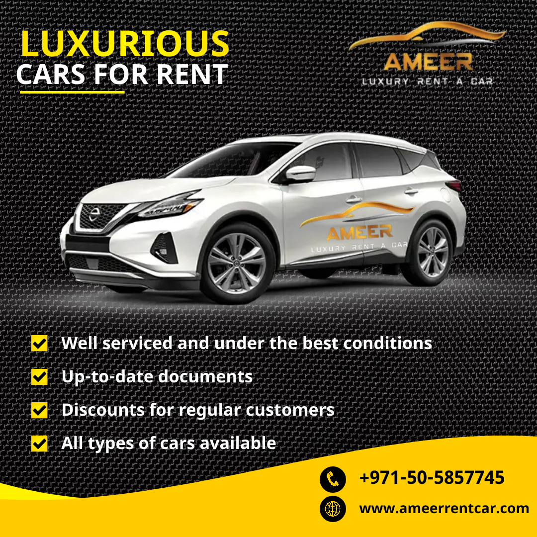 AMEER LUXURY RENT A CAR is UAE’s leader car rental company in Dubai, Abu Dhabi, Sharjah, Ajman and other Emirates. You can search for cars to rent based on your model and need and filter through results before you make your choice.